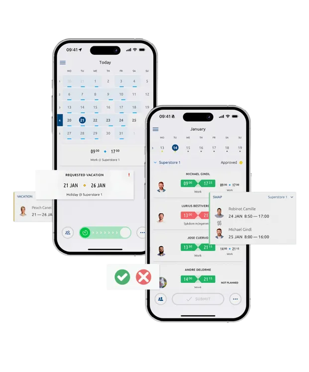 Uanset om dine medarbejdere arbejder som kasseassistenter eller på gulvet, gør vores tidsregistreringssystem arbejdet lettere for alle. Tilpas dig nemt i travle perioder med præcis tidsregistrering og overblik over arbejdstid – døgnet rundt.