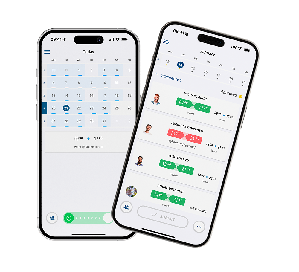 Medarbejdernes ugentlige arbejdstid fastsættes af deres overenskomst. Vores system overvåger den daglige arbejdstid og sikrer, at ingen overstiger grænsen for maksimal arbejdstid. Med varslinger i systemet bliver du opmærksom på, om I overholder reglerne for din medarbejders arbejdsuge.